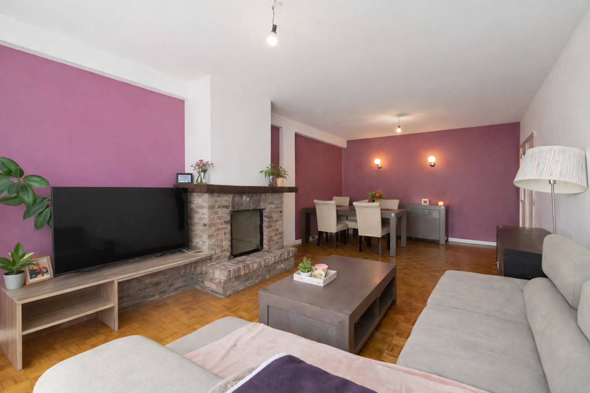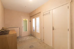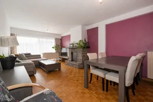Binnenkomen doe je in de ruime inkomhal met vestiaire en gastentoilet. Van daaruit kom je in de leefruimte, waar de massieve parketvloer en de schouw meteen karakter brengen. Dankzij de royale oppervlakte richt je hier moeiteloos een comfortabele zithoek en volwaardige eetplaats in.